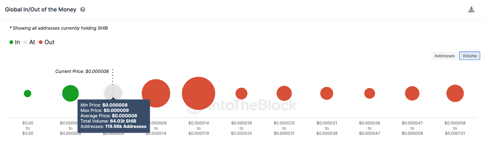 SponsoredComo pode ser visto no gráfico abaixo, 118.980 detentores compraram 64,03 trilhões de SHIB ao preço médio de US$ 0,000008. Os compradores podem tentar uma recuperação desse intervalo se continuarem acumulando pedidos de compra.