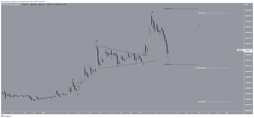 Se a contagem estiver correta, o preço da SHIB agora está atolado em uma estrutura corretiva A-B-C, que pode terminar no nível de suporte de retração de 0,618 de Fibonacci em US$ 0,0000108.