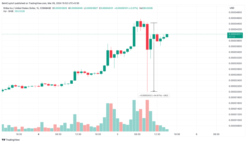 A queda significativa deve-se a grandes ordens de venda que ultrapassaram a liquidez da Coinbase. Depois disso, os volumes à vista de SHIB na plataforma aumentaram para US$ 1,7 bilhão, o maior entre seus pares. Além disso, apesar da liquidação antecipada, a memecoin se recuperou de forma impressionante, registando um salto de 46% nas últimas 24 horas.