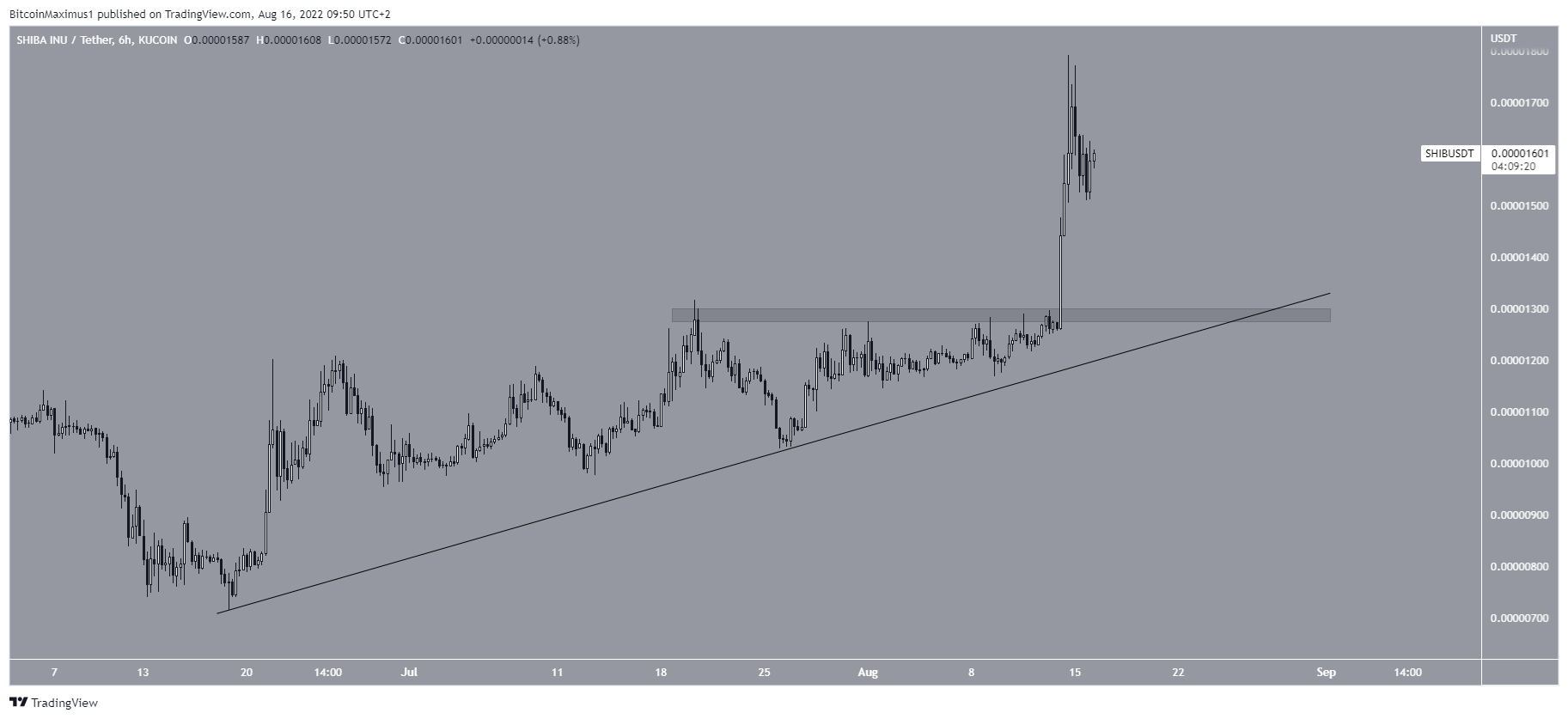 O gráfico de seis horas não mostra um padrão claro. Embora seja possível que o preço da SHIB esteja seguindo uma linha de tendência de alta, a linha foi validada apenas duas vezes.