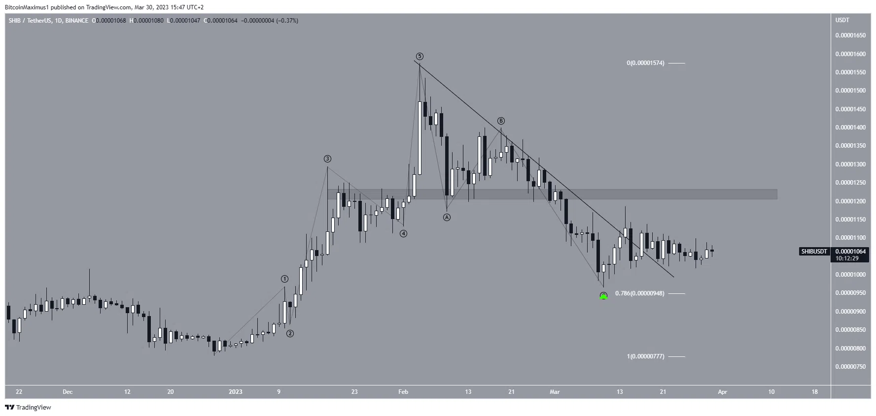 Além disso, a contagem de ondas se alinha com um aumento. A partir de janeiro, a SHIB completou um movimento ascendente de cinco ondas e, em seguida, uma correção A-B-C, que terminou no nível de suporte de retração 0,786 de Fibonacci.