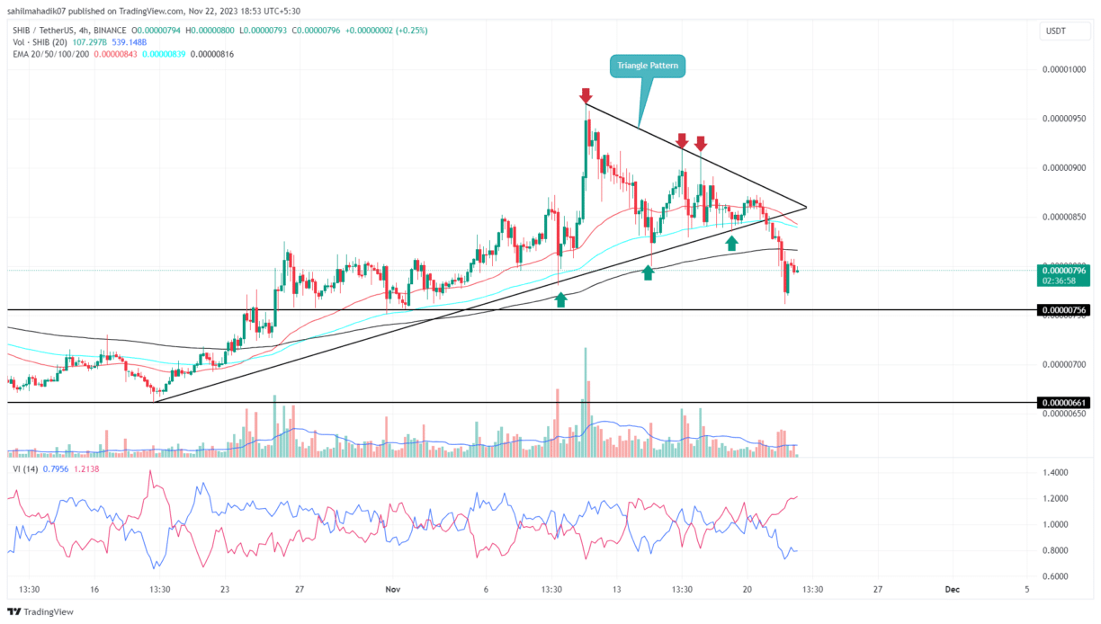 A Shiba Inu (SHIB) está em tendência de baixa desde que não conseguiu ultrapassar uma importante resistência em 11 de novembro.
