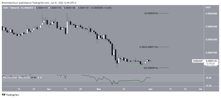 A Shiba Inu (SHIB) aumentou 30% desde o fundo de 12 de maio e criou seu primeiro fundo mais alto.