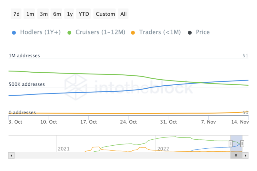SponsoredAssim, dar uma olhada na distribuição de oferta da SHIB pode ajudar a avaliar as chances de um rali. Notavelmente, os endereços de curto prazo (1-12 meses) estavam diminuindo enquanto os titulares (1 ano +) estavam aumentando. Os traders (menos de 1 mês) tiveram um aumento de 71,17% nos últimos 30 dias. A ação de preço maior parece ser principalmente impulsionada pelos grupos de detentores e traders.