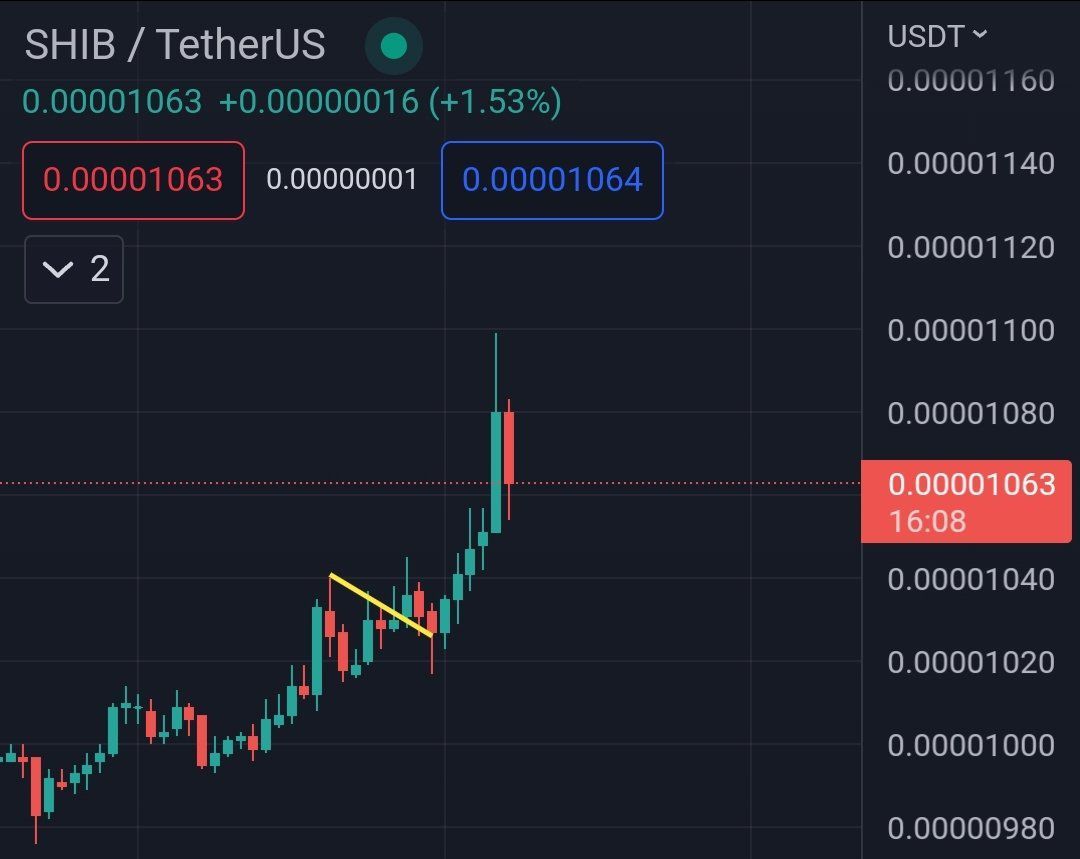 SponsoredO entusiasta da SHIB @army_shiba tuitou um gráfico sobre o ativo que mostra que o preço subiu para US$ 0,00001.