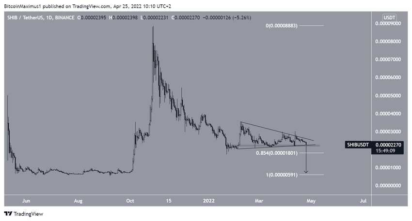 No entanto, um movimento que percorre toda a altura do padrão poderia potencialmente levar a SHIB até US$ 0,0000060. Uma queda nesse nível anularia completamente todo o movimento ascendente que começou em outubro de 2021.