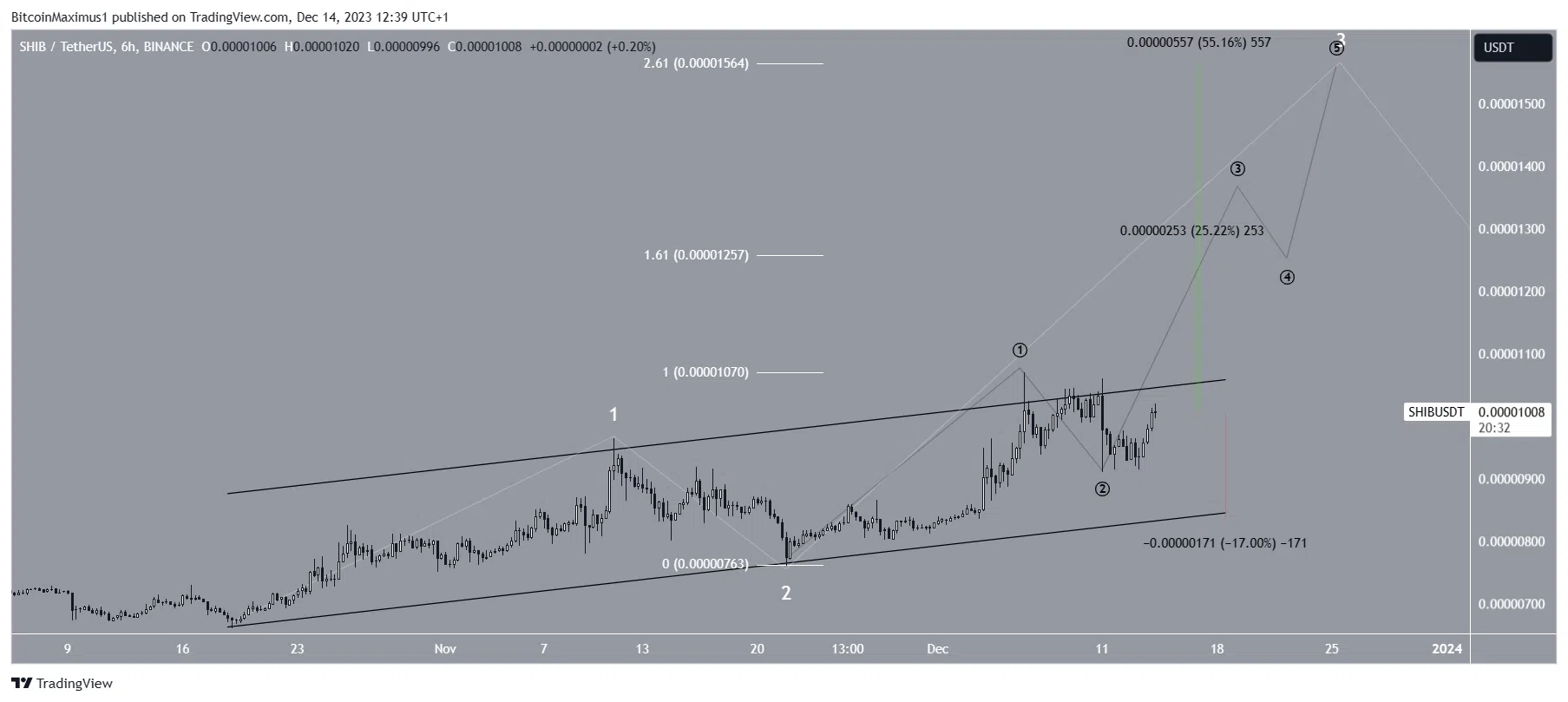 O gráfico de seis horas oferece uma perspectiva otimista para a tendência futura da Shiba Inu devido à contagem de ondas.