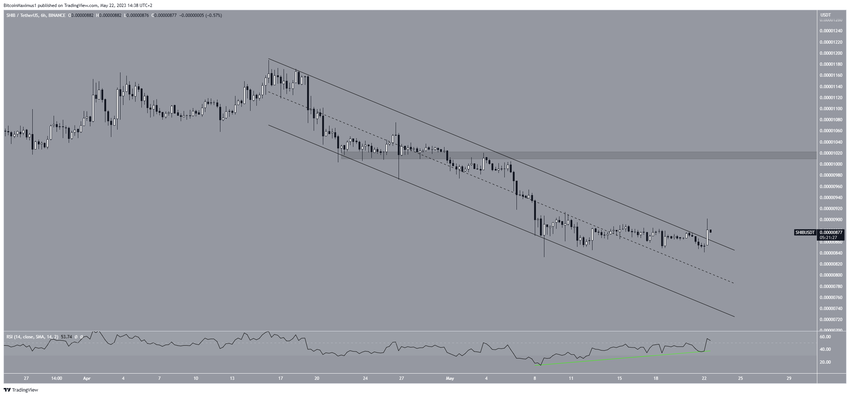 Embora um salto não tenha ocorrido imediatamente, a SHIB está em processo de criação de uma vela de alta, que pode catalisar um aumento em direção à linha de resistência do triângulo.