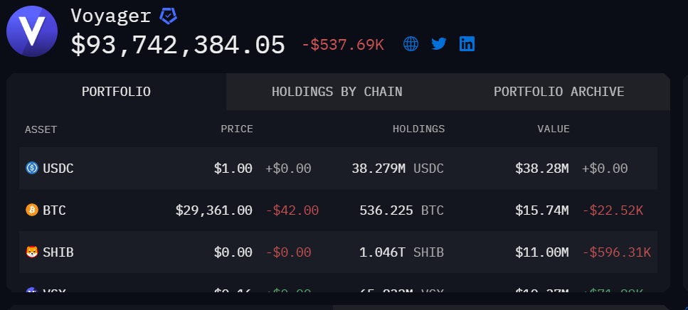 Nos últimos dias, o painel da Arkham Intelligence mostra que a Voyager fez várias transações envolvendo ativos digitais como Ethereum, Shiba Inu e USDC para endereços de depósito da Coinbase. As transações mais recentes envolveram a transferência de 1.500 ETH e 250 bilhões de tokens SHIB para a exchange.