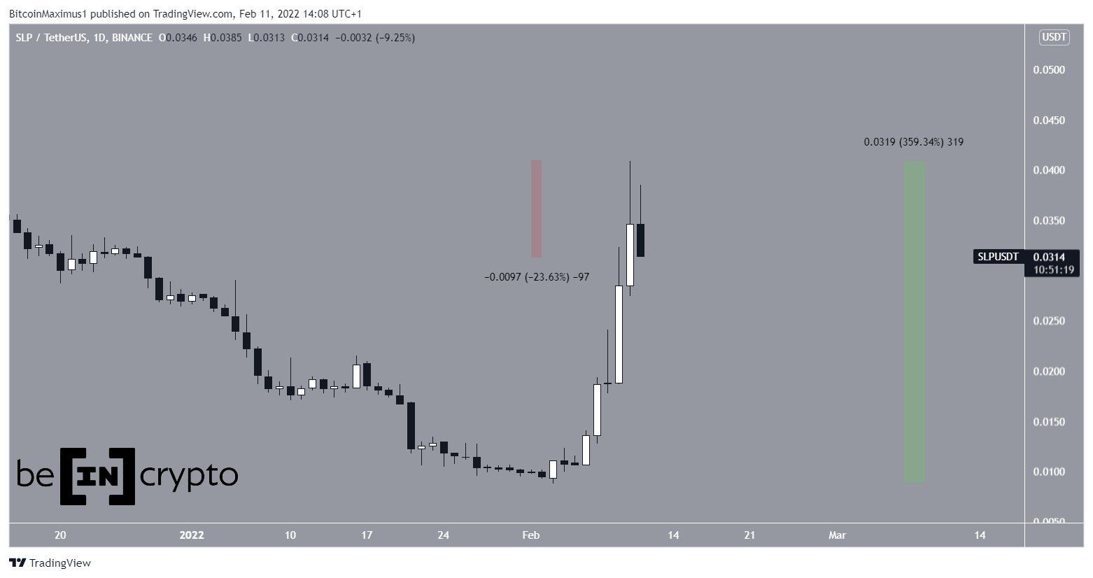 O Smooth Love Potion (SLP) tem tido uma forte valorização em fevereiro, dando a impressão de que a sua tendência de baixa chegou ao fim.