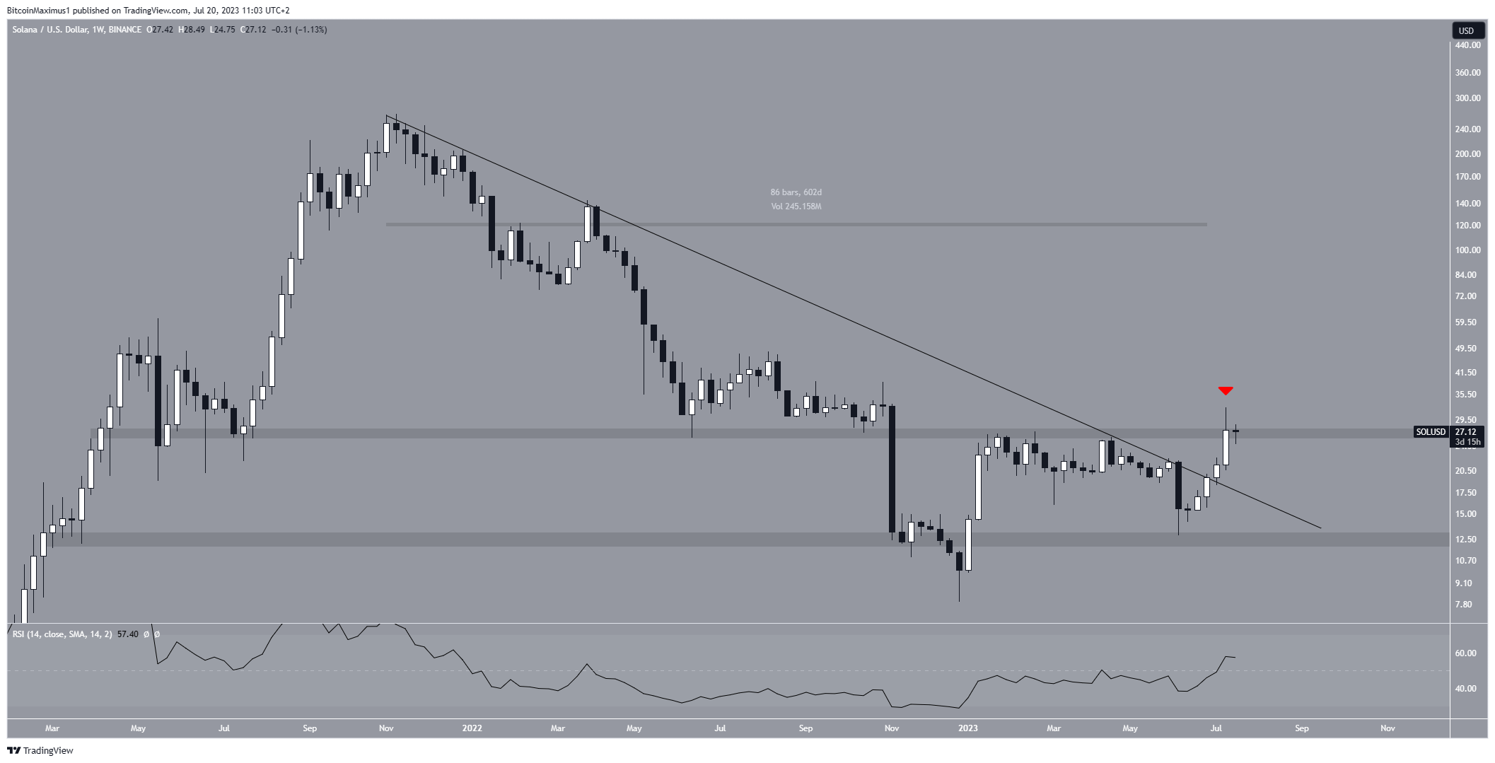 A Solana (SOL) está em forte tendência de baixa desde 10 de junho. O movimento causou um rompimento nos níveis de resistência diagonal e horizontal. Isso sugere fortemente que uma nova reversão de tendência de alta provavelmente está em andamento.