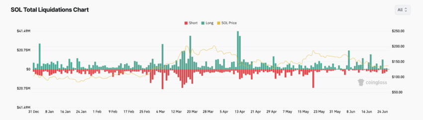 Devido à queda constante do preço da SOL, as liquidações long totalizaram US$ 27,36 milhões somente nos últimos seis dias.