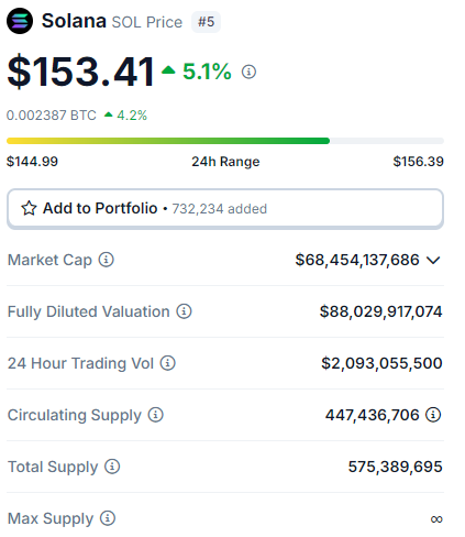 Com uma alta de mais de 5%, a Solana tem o melhor desempenho entre as 10 maiores criptomoedas em valor de mercado hoje. A nível de comparação, o movimento atual é 10x maior do que o realizado pelo BTC atualmente.