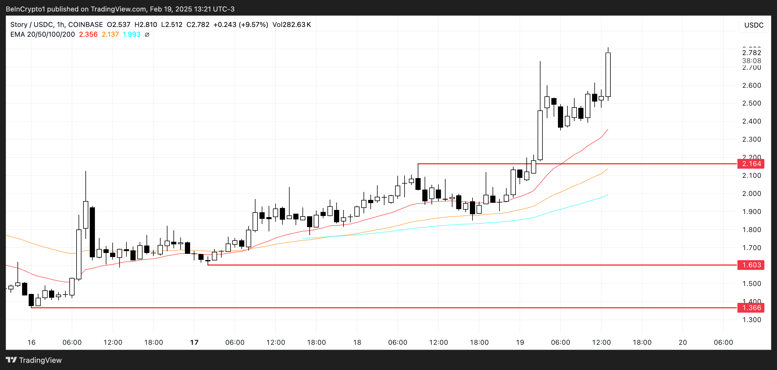 A configuração técnica da Story sugere que o momentum está acelerando, com sua estrutura de EMA reforçando o movimento de alta contínuo. Se essa tendência se mantiver, a Story pode em breve testar US$ 3 ou mais, mas se o momentum diminuir, corre o risco de uma correção acentuada em direção a US$ 2,16 ou menos.