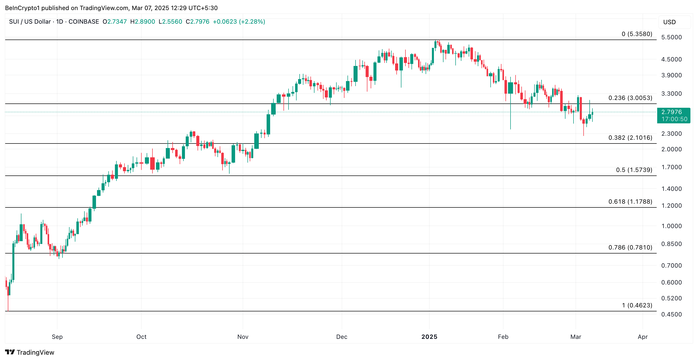 Embora tenha experimentado uma leve correção desde então, a Sui continuou a ter uma demanda constante nas últimas 24 horas, aumentando a probabilidade de um rali sustentado no curto prazo.