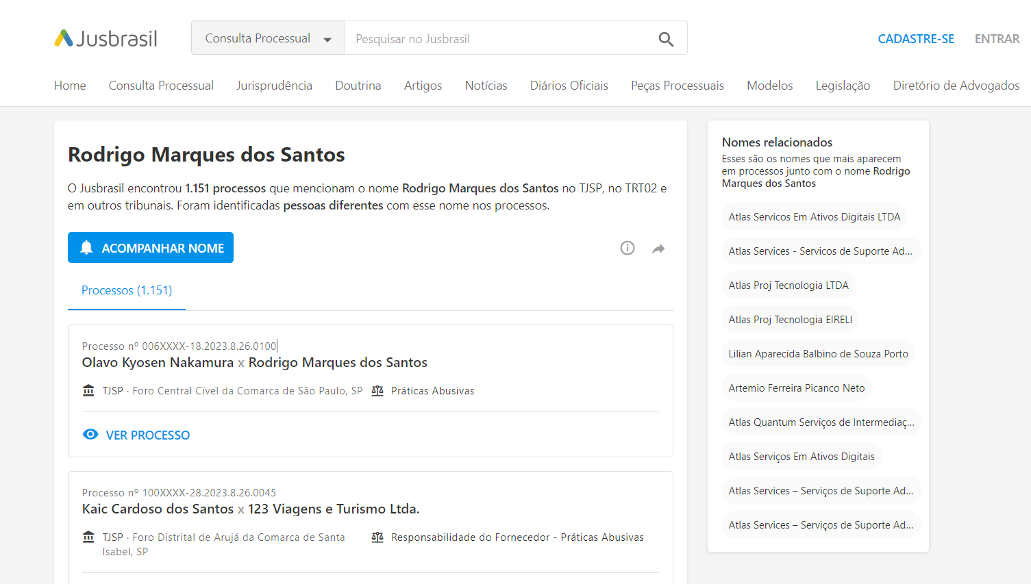 Hoje Rodrigo Marques dos Santos, segundo o Jusbrasil tem 1.151 processos que o mencionam no TJSP, no TRT02 e em outros tribunais. Foram identificadas pessoas diferentes com esse nome nos processos.