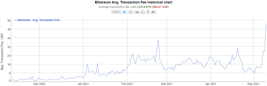 As taxas médias de transação na rede Ethereum (ETH) dispararam para quase US$ 60, registrando um novo recorde histórico. Em certos momentos, o valor pode saltar para mais de US$ 300.