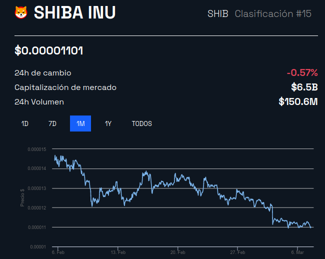 A Shiba Inu atualmente ocupa o 15º lugar no ranking de criptomoedas, com uma capitalização de mercado de US$ 6,48 bilhões.