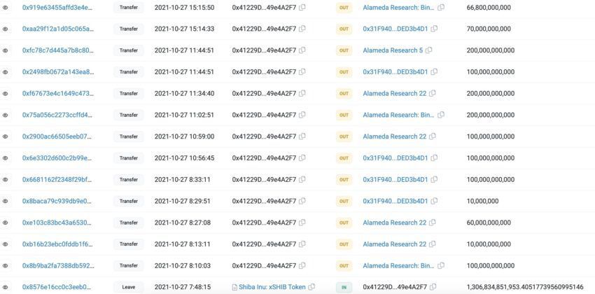 “Em 27 de outubro de 2021, o maior farmer de Shiba Inu desembolsou US$ 107 milhões em SHIB e enviou tudo para a FTX, Huobi, Binance e OKX.”