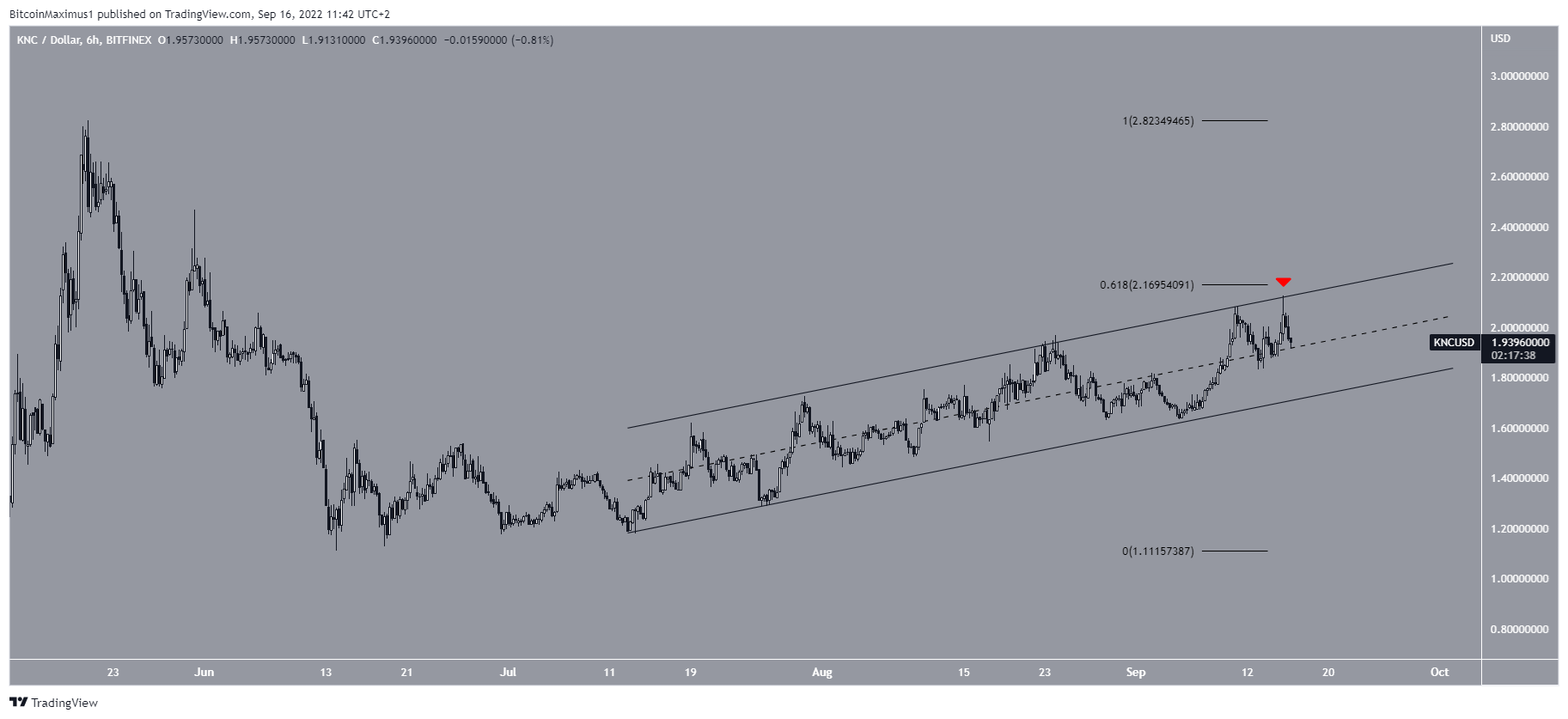 KNC vem subindo dentro de um canal paralelo de alta desde 11 de julho. Esses canais geralmente contêm movimentos corretivos, o que significa que um eventual rompimento seria provável.
