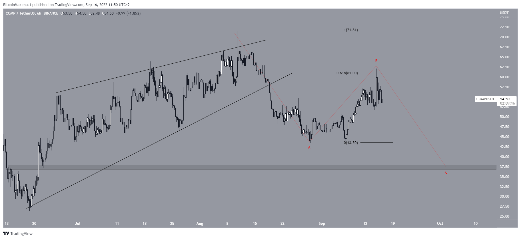 A COMP vinha subindo dentro de uma cunha de alta desde que atingiu um fundo de preço em 19 de maio. O movimento levou a um topo de US$ 71,50 em 10 de agosto. No entanto, o preço vem caindo desde então e caiu abaixo da cunha cinco dias depois.