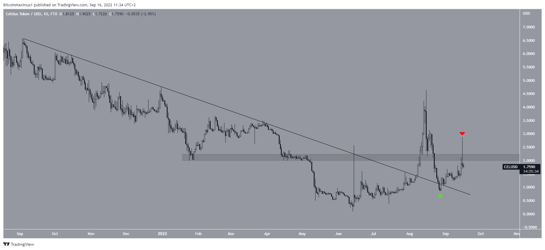 Embora o token tenha saltado na linha de tendência de baixa (ícone verde), ele não conseguiu se manter acima da área de resistência horizontal de US$ 2,10 (ícone vermelho). A menos que a CEL consiga recuperar essa resistência, a tendência não pode ser considerada de alta.