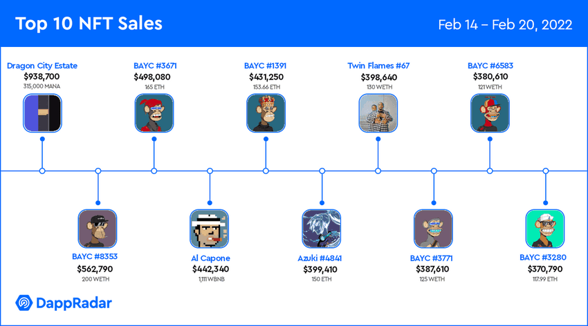 Nos Top 10 vendas de NFTs (De 14 de Fevereiro – 20 de fevereiro)