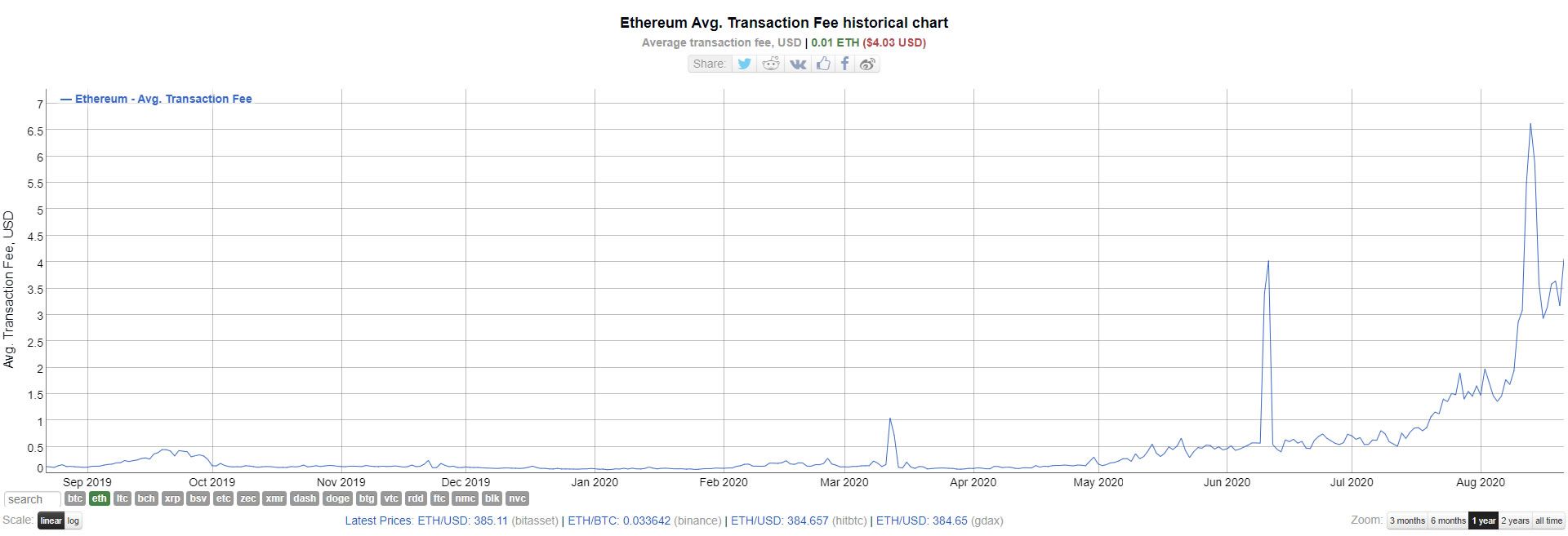 Atualmente, o custo médio de transação da Ethereum é de US $ 4, quase 5.000% maior do que no início deste ano. Mesmo durante a febre das criptomoedas de 2017/18, os preços médios das transações atingiram esse nível de forma rápida.