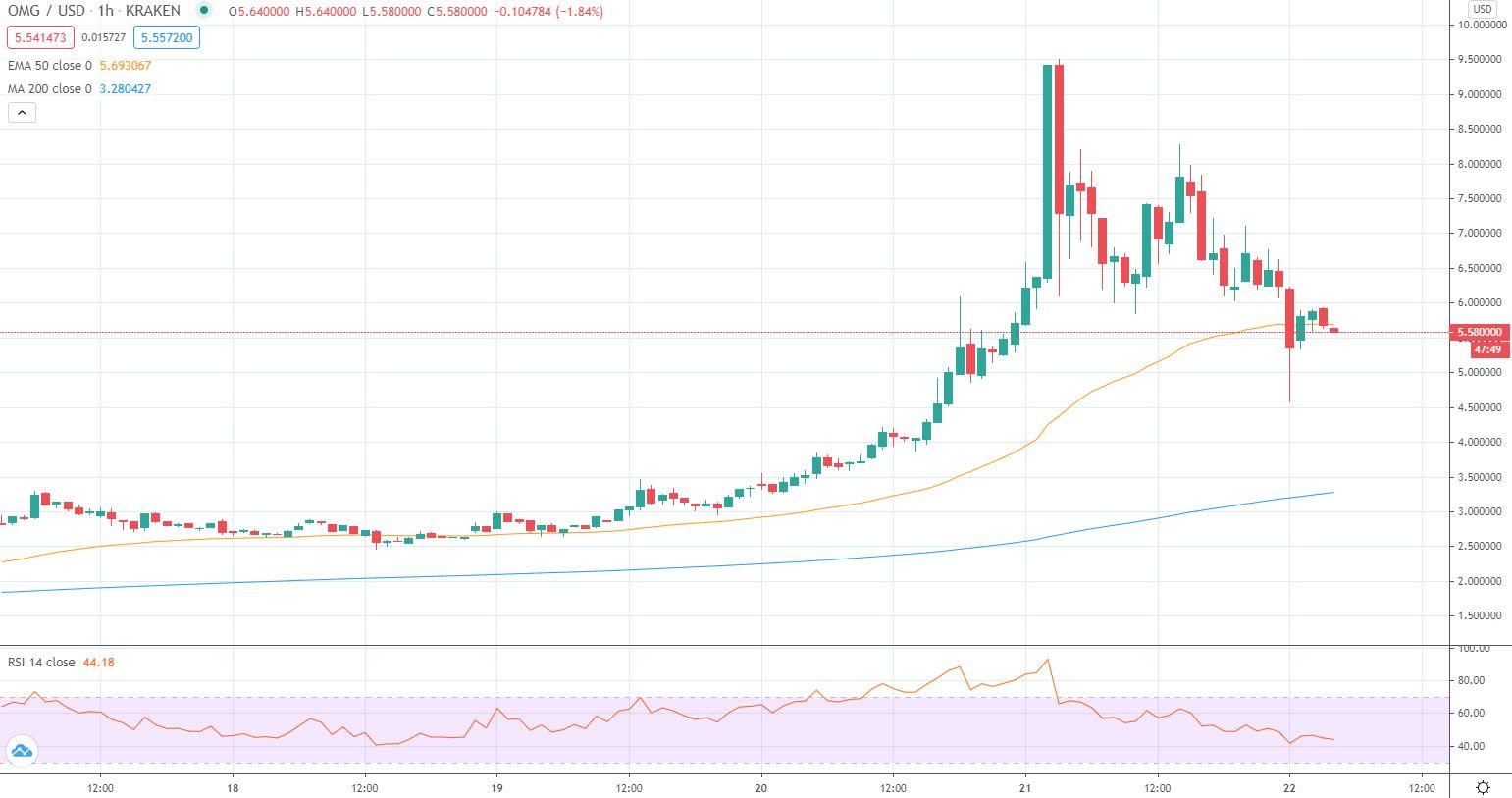 No verdadeiro estilo altcoin, o dump veio logo depois e os preços recuaram para o nível de $ 5,60 no momento em que este artigo foi escrito. Dito isso, os preços da OMG ainda estão cerca de 250% acima da linha de suporte durante a maior parte deste ano, que está em torno de US $ 1,60.