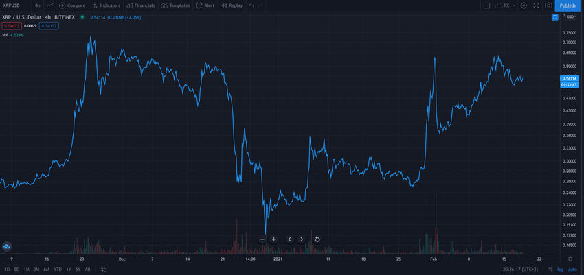 A XRP atualmente é negociada a US$ 0.53, ou seja, perto do preço que mantinha antes do processo da SEC.