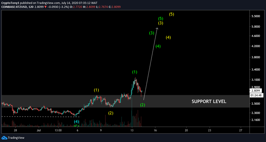 O trader de criptomoedas @ Glowto1994 afirmou que o preço da Tezos está caindo em direção ao suporte, mas espera-se que continue subindo, possivelmente chegando a US $ 5.