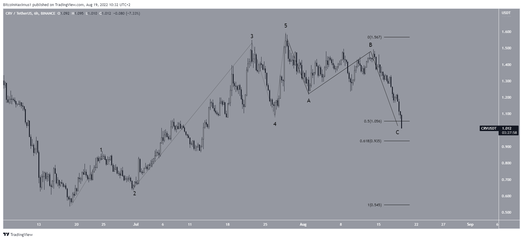 Desde então, vem completando uma estrutura corretiva A-B-C. Em caso afirmativo, atualmente está chegando ao final da onda C, que deve terminar entre os níveis de suporte de retração de Fibonacci de 0,5-0,618 em US$ 0,93 a US$ 1,05.
