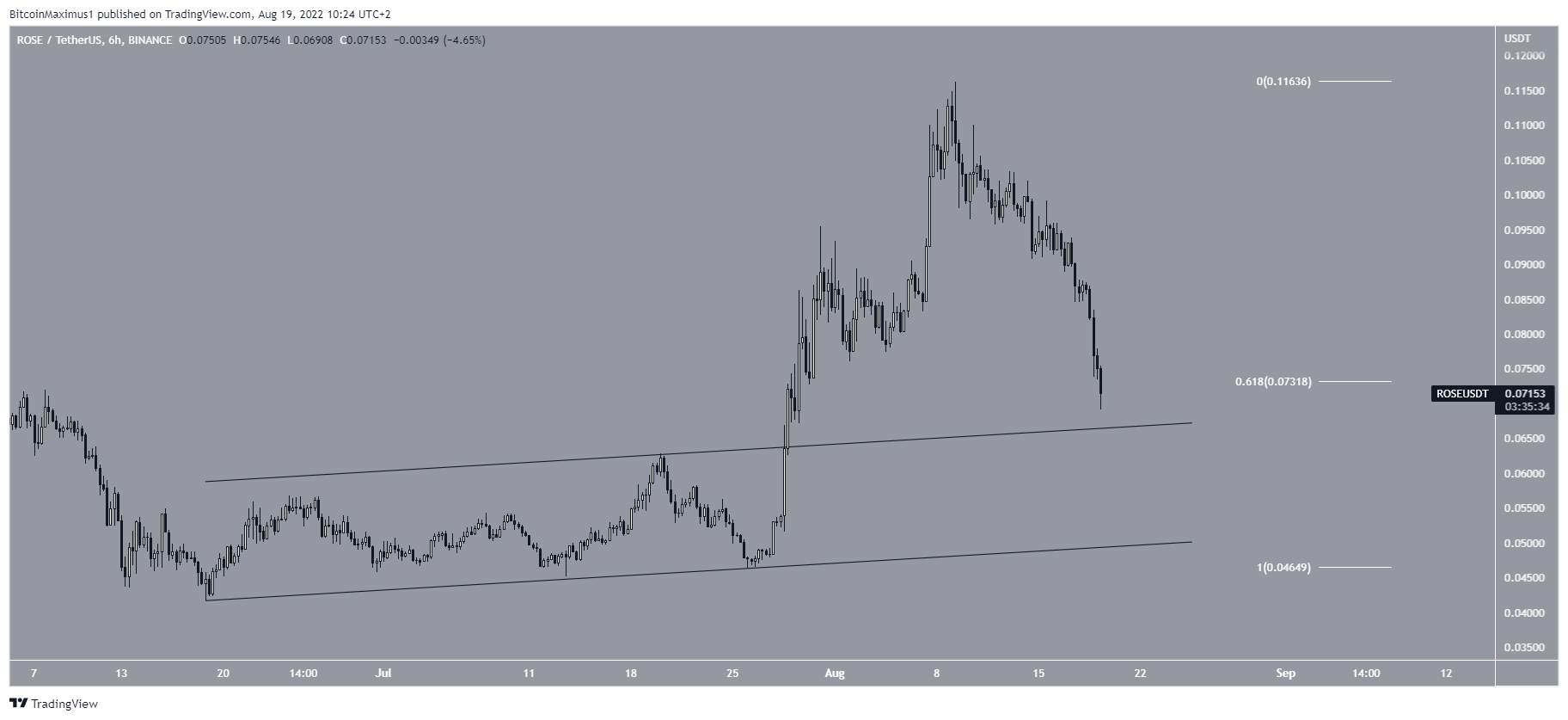 A ROSE saiu de um canal paralelo ascendente em 28 de julho. Ela alcançou uma alta de US$ 0,116 antes de cair.