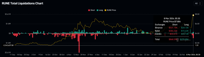 Após a alta nos últimos dois dias, o RUNE conseguiu romper uma barreira crucial e está prestes a transformar outro nível-chave de retração de Fibonacci em suporte. No entanto, ao fazer isso, causou perdas consideráveis para aqueles que estão apostando na queda do ativo.