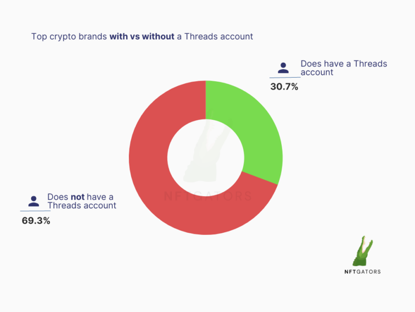 Segundo a NFT Gators, cerca de 70% das empresas atuantes na indústria de criptomoedas não abriram conta no Threads, apesar de já ter passado mais de uma semana desde o lançamento da rede social da Meta.