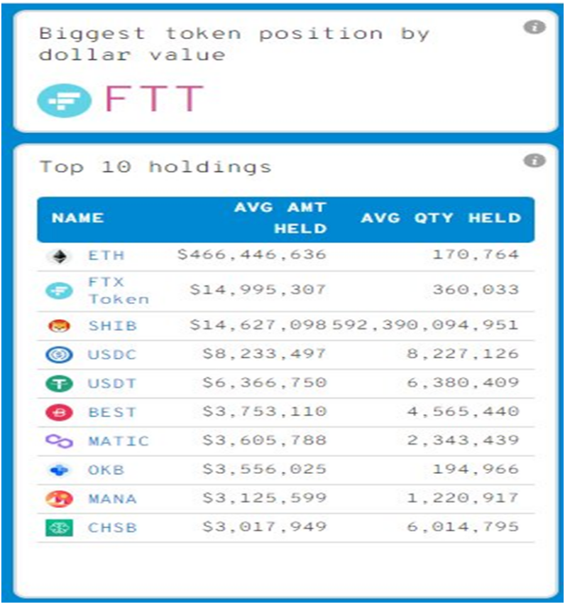 A quantidade média de tokens FTX mantidos pelas carteiras é de 360.033, com um valor médio de US$ 14.995.307 atualmente.