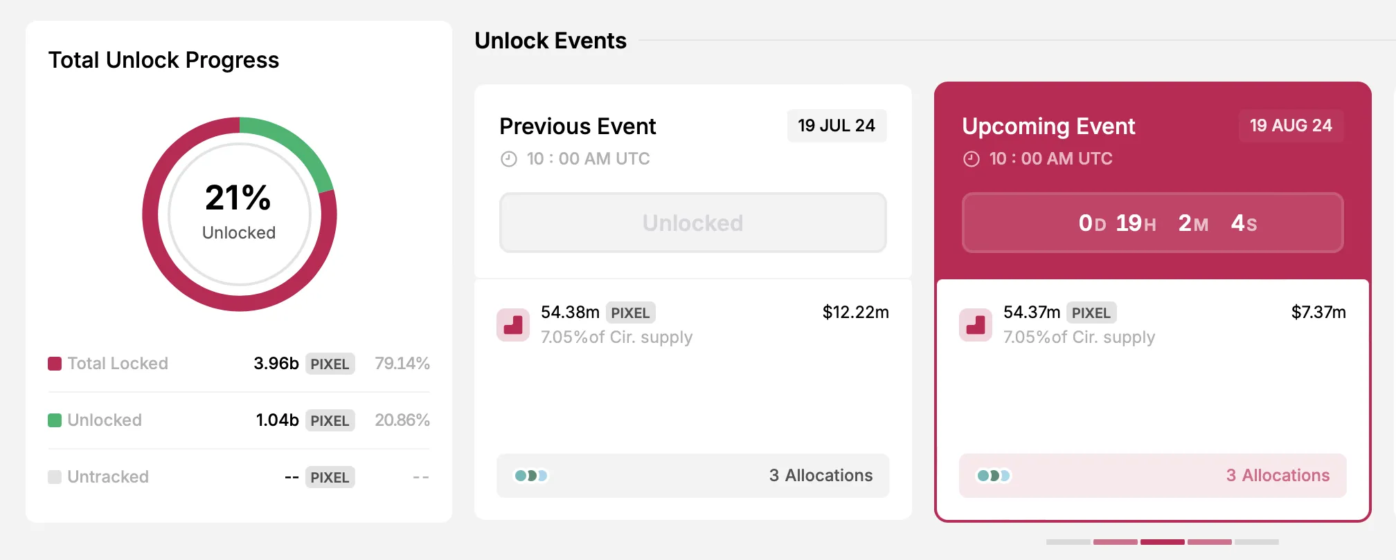 - Número de tokens desbloqueados: 54,37 milhões de PIXEL