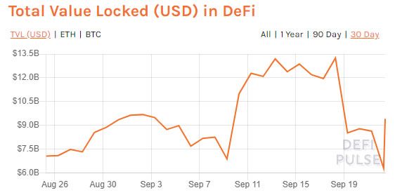 Muitos dos principais tokens DeFi, incluindo LEND, CRV, UNI, SUSHI , BAL, UMA, KAVA, REN, SNX, SWRV e YFI perderam dois dígitos nas últimas 24 horas: