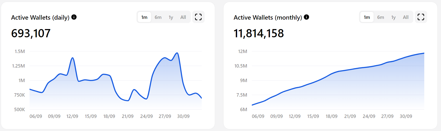 O aumento na atividade de memecoins, aliado à integração do TON com o Telegram e seu acesso aos 900 milhões de usuários da plataforma, impulsionou significativamente a popularidade do TON. Dessa maneira, o TON agora conta com mais de 11,8 milhões de carteiras ativas mensais e cerca de 693 mil carteiras ativas diárias.