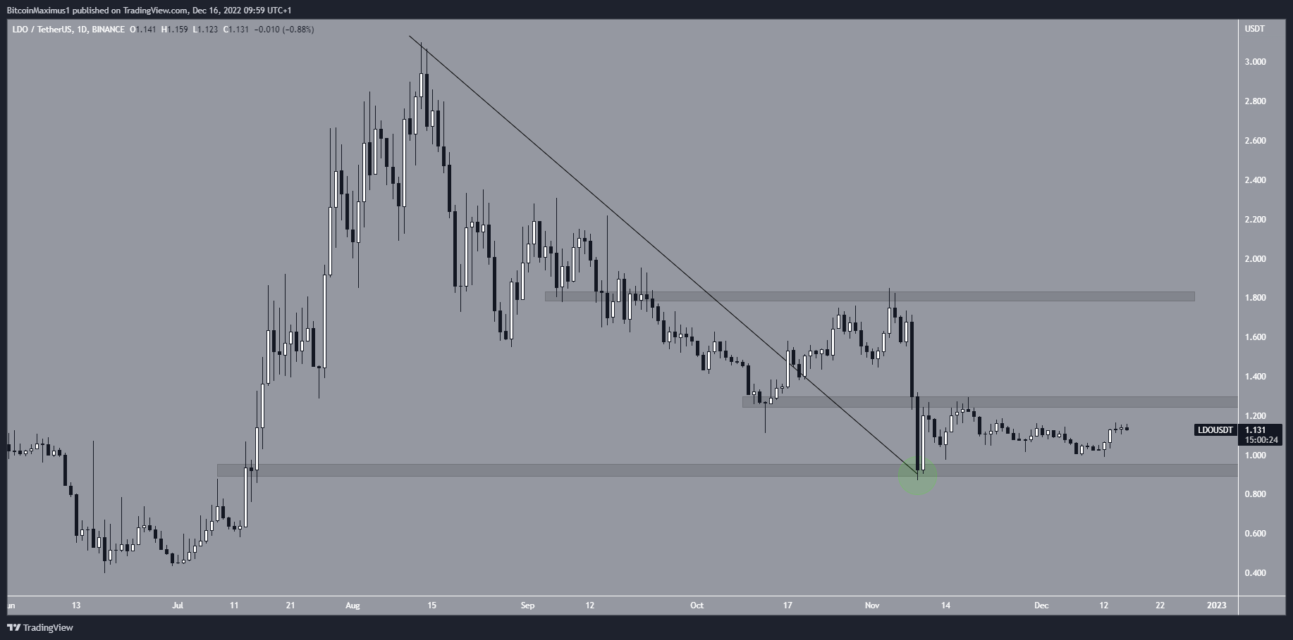 A LDO está subindo desde 9 de novembro, quando validou a linha de resistência descendente da qual havia rompido anteriormente.