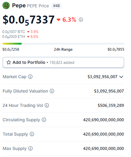 A PEPE tem tido o pior desempenho entre as memecoins, com uma queda de 6,3%. Apesar de ainda acumular uma valorização nos últimos sete dias, a altcoin está no vermelho em tempo maiores, com seu preço caindo 12% nos últimos 14 dias.
