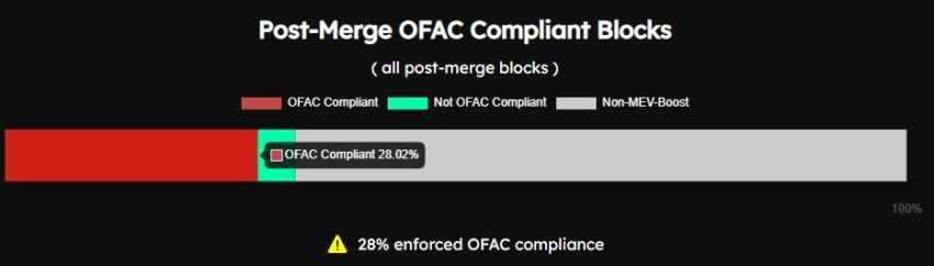 Atualmente, 28% dos blocos estão em conformidade com os regulamentos da OFAC. Os críticos disseram que as redes devem permanecer neutras, e alguns disseram que ações punitivas podem ter que ser tomadas contra certos validadores. No entanto, parece que as autoridades dos Estados Unidos estão fazendo tudo o que podem para impor o controle sobre o mercado de criptomoedas.
