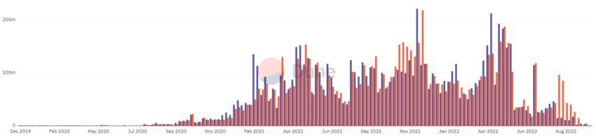 SponsoredOs depósitos e saques semanais também sofreram um impacto significativo, a ponto de serem menos de um décimo do que eram nas primeiras partes do ano. Na última semana de setembro, os depósitos e saques semanais totalizaram US$ 3,6 milhões e US$ 5 milhões, respectivamente.
