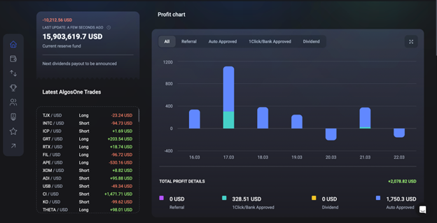 “O AlgosOne oferece uma excelente combinação de julgamento humano e tecnologia de ponta e, embora o gerenciamento responsável de riscos seja claramente priorizado, os lucros também o são, e eles são de próximo nível”.