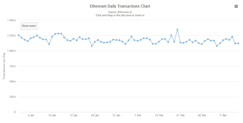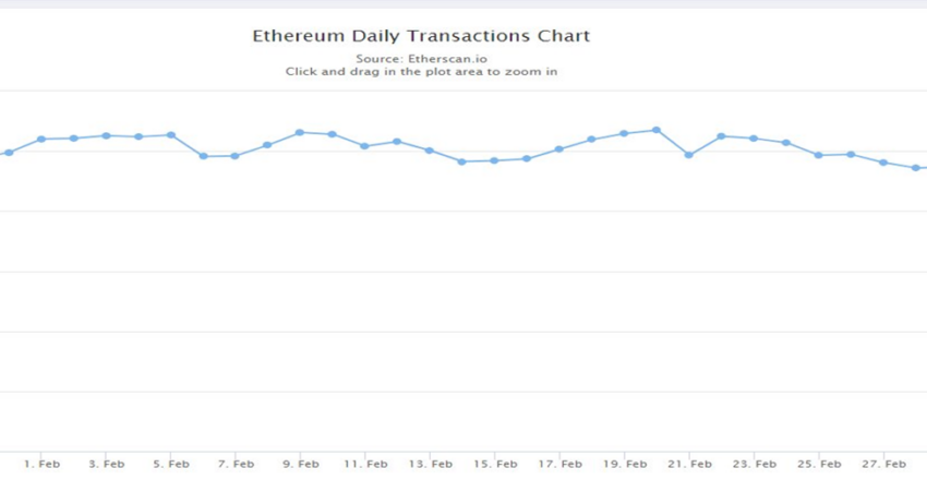 O mês passado provou ser um mês difícil para a blockchain Ethereum. A maior cadeia em termos de valor total bloqueado (TVL) conseguiu registrar aproximadamente 32.739.456 transações durante fevereiro.