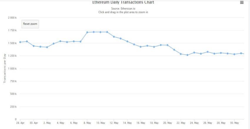 A contagem das transações do Ethereum diminuiram a partir de 2021