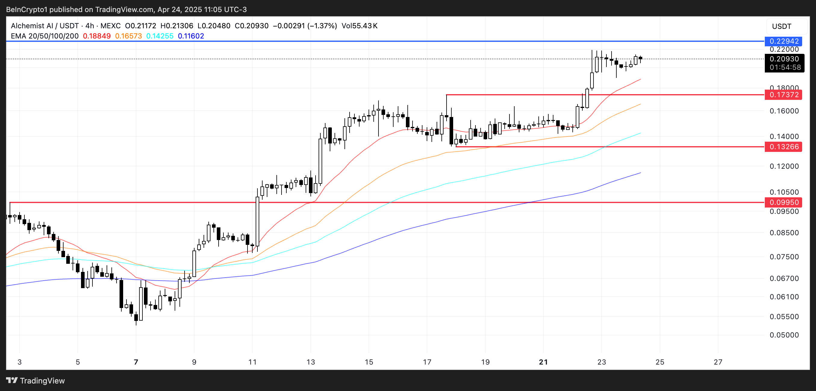 De uma perspectiva técnica, a ALCH está se aproximando de um nível de resistência chave em torno de US$ 0,229. Se o impulso atual continuar, uma quebra acima dessa zona pode impulsionar o token além de US$ 0,25 e em novos máximos históricos.