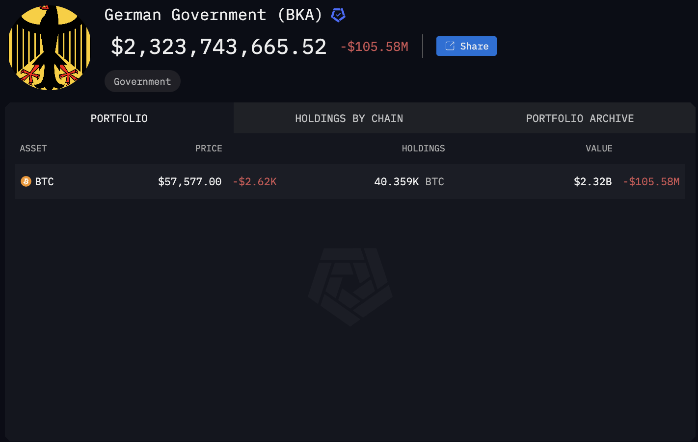 Em meio a essa volatilidade, o fundador da Tron propôs comprar todo o cache de Bitcoin em poder do governo alemão, no valor de 40.359 BTC.