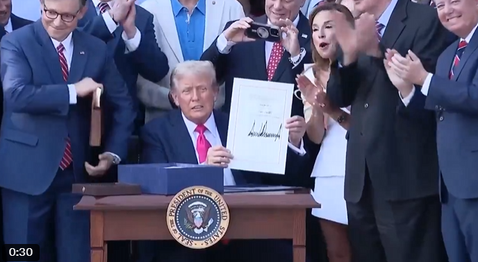 O presidente Donald Trump sancionou a “One Big Beautiful Bill” de US$ 3,3 trilhões ontem (4), durante uma cerimônia na Casa Branca celebrando o Dia da Independência dos EUA.