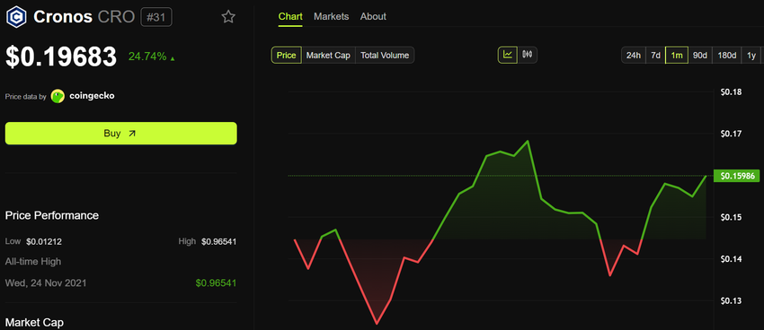 O preço do CRO subiu quase 25% com essa notícia e estava sendo negociado a US$ 0,1968 no momento em que este artigo foi escrito.